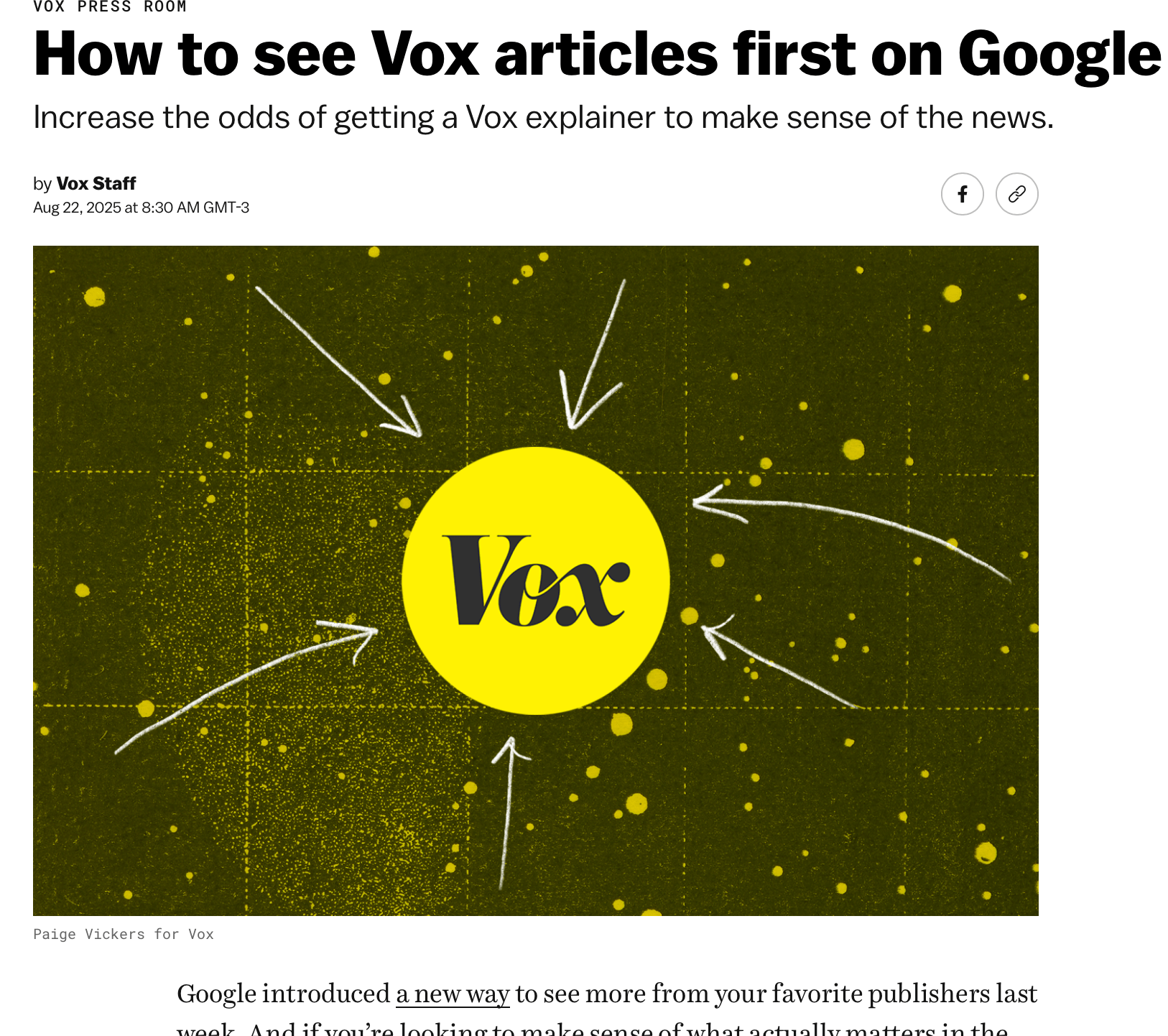 Site ensina pessoas a selecionarem a Vox como uma fonte favorita.