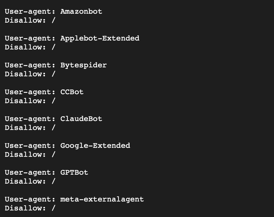 Atualmente, apenas bots diversos, principalmente os de IA, estão bloqueados: