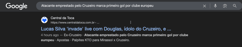 Encontramos, não tão bem posicionado, um conteúdo diverso já indexado que continha os termos exatos procurados. É possível que o GPT tenha usado a página como uma espécie de ponte para para descobrir a página real facilmente e dar todo o contexto para a busca.