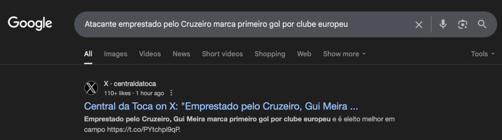 Vinícius Veloso, analista de SEO, trouxe outro exemplo:
