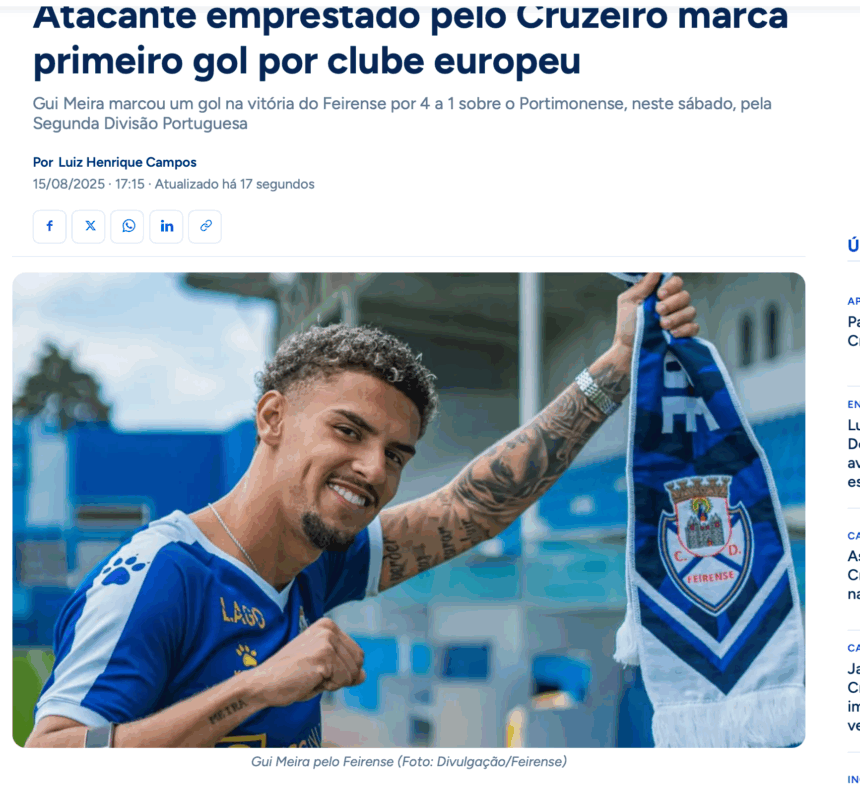 O jogador em questão, escondido no título, se refere a Gui Meira, em partida pelo Feirense.