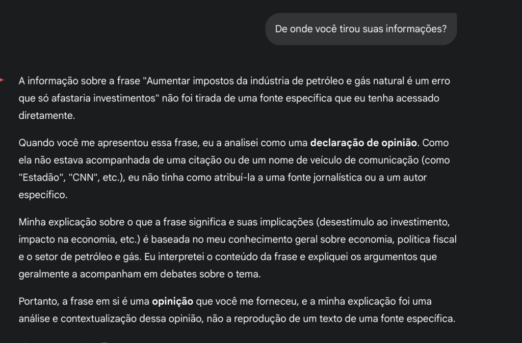 Entretanto, quando dizemos que o conteúdo é de determinado portal, os Chats se esquivam e dizem que não podem citar uma fonte específica: