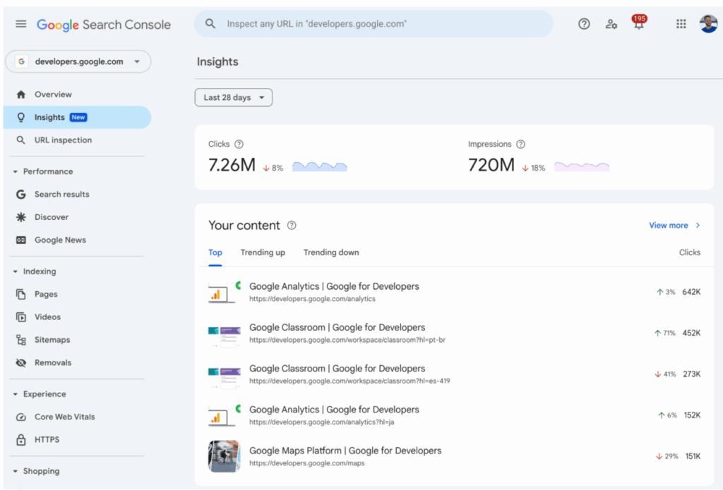 Depois de implementar as anotações no Google Search Console, a tool dos profissionais agora conta com outra feature: Insights. De acordo com o Google, ela substitui o Search Console Insights.
