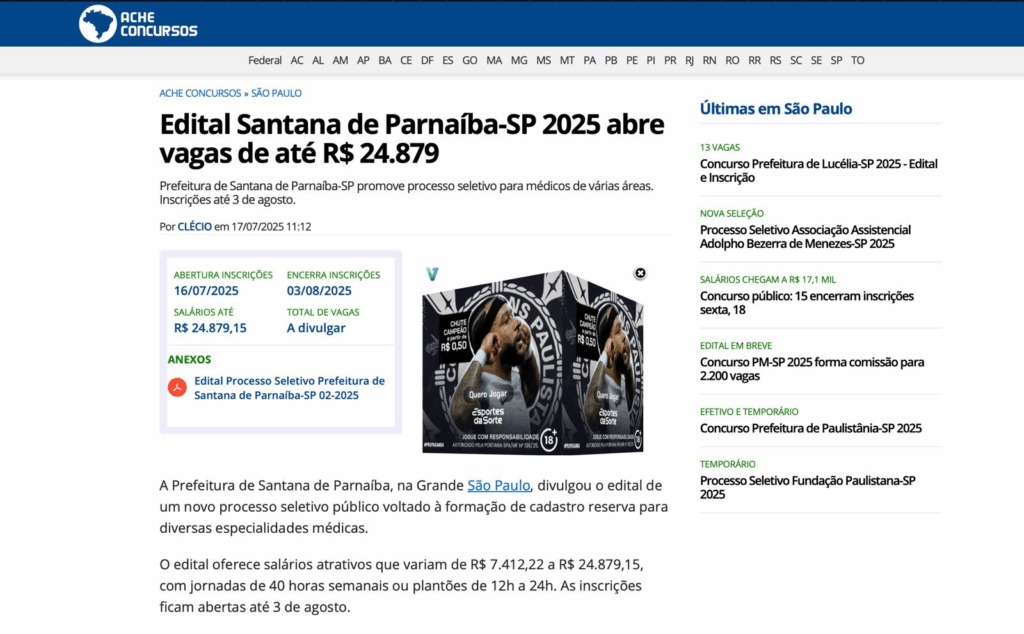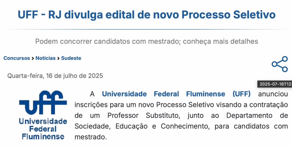 Outra página de notícias de concursos público sem nenhuma imagem na página: