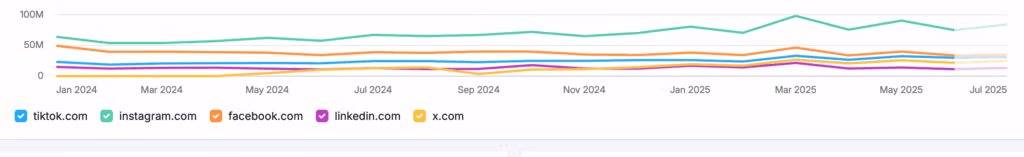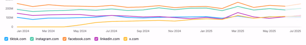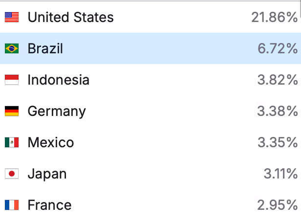 Ao considerar X, Instagram, Tiktok, Facebook e LinkedIn, o Brasil é o segundo país que mais trafega nelas. O país está atrás apenas dos Estados Unidos.