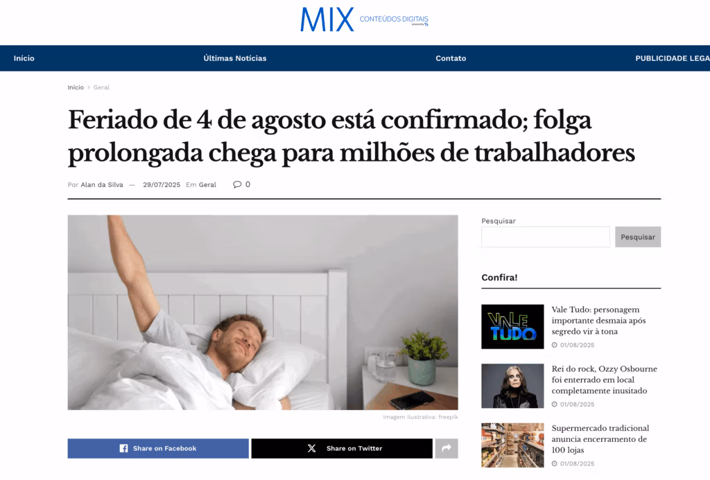 De certa forma, estamos acostumados com os portais tratarem feriados municipais como federais em seu título, obtendo o clique a partir da falsa esperança dos trabalhadores para um folga.