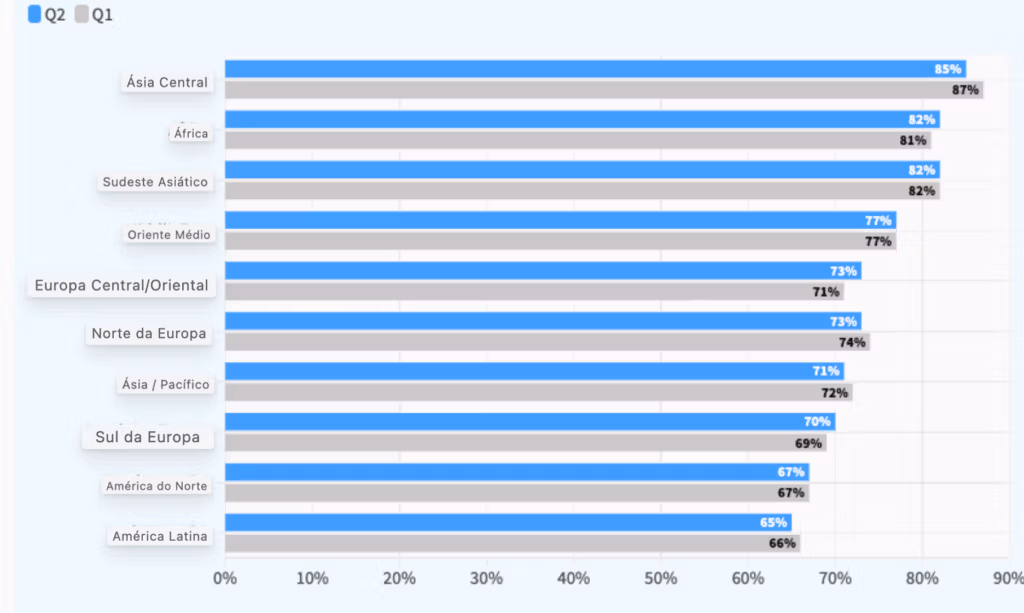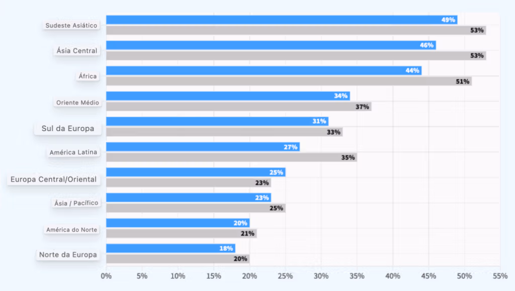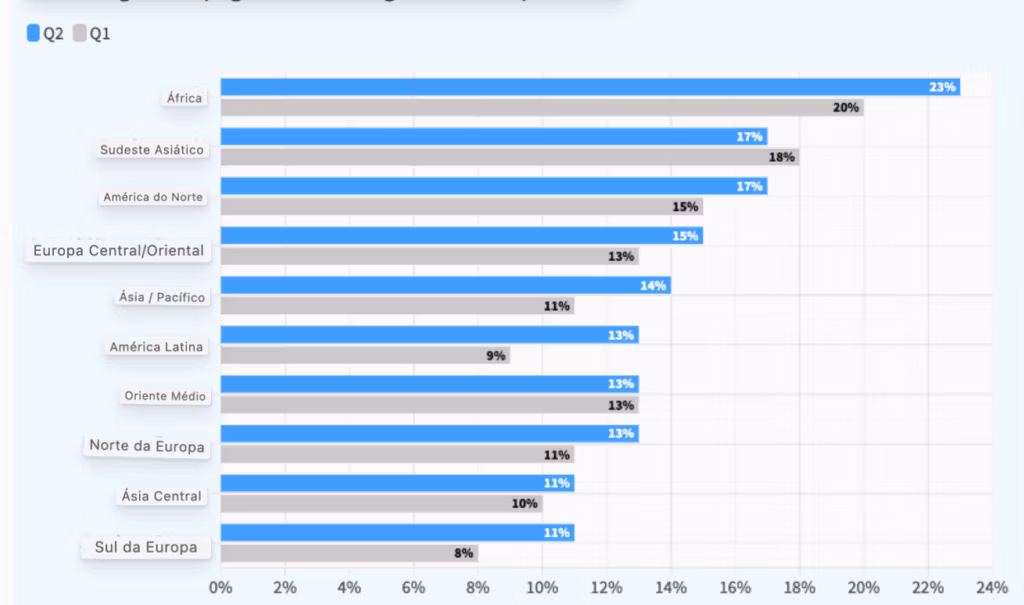 Este relatório, fornecido por Chartbeat, mergulha nesses dados e expõe outra camada de complexidade: a persistente desigualdade no acesso móvel, que posiciona a América Latina atrás de outras regiões e se manifesta de forma acentuada dentro do Brasil, criando um abismo digital entre o Sudeste e as regiões Norte e Nordeste.