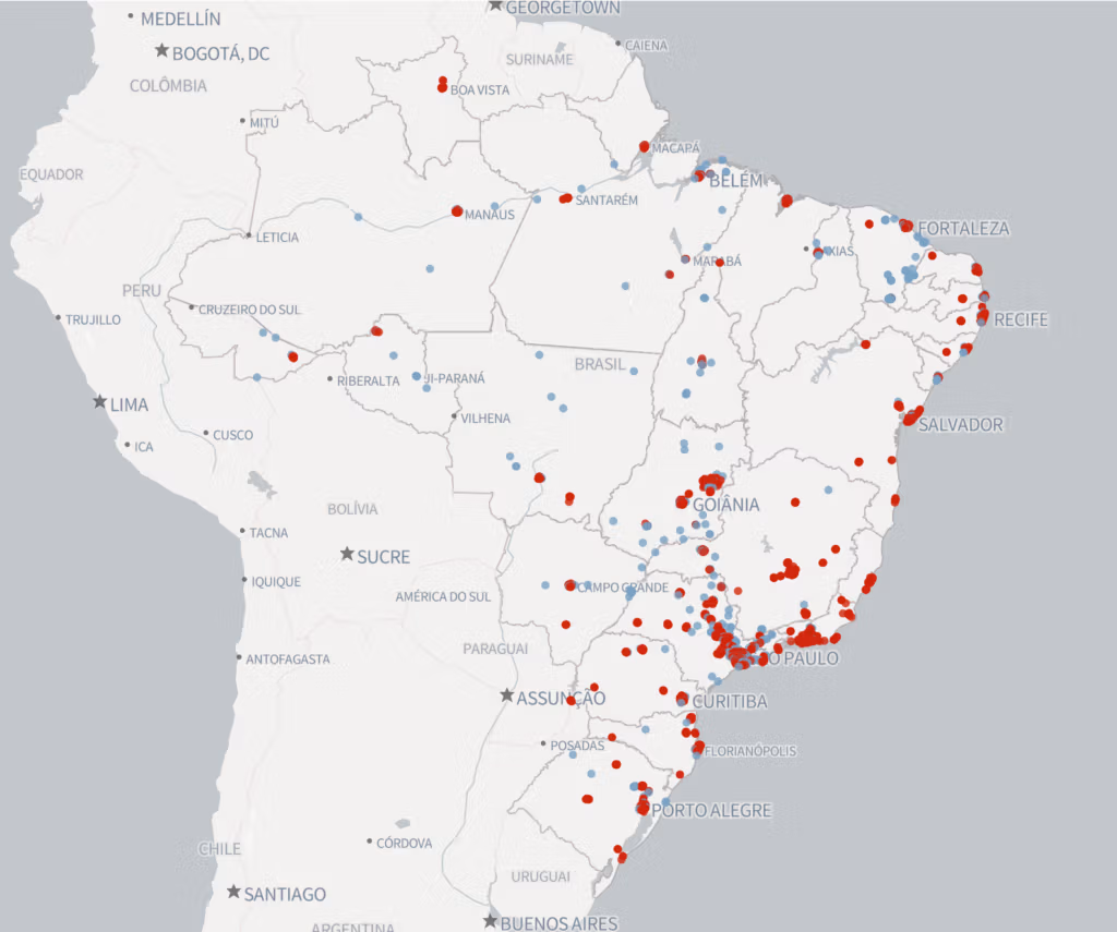 Da mesma forma, a existência de conexão 5G nas cidades ainda está concentrada nos grandes centros:
