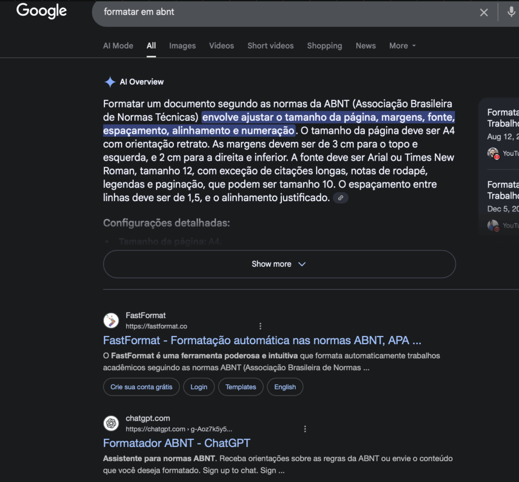 Para “formatar para abnt“, o GPT aparece na segunda opção: