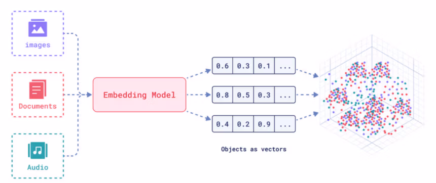 É curioso que eu estava acostumado com o conceito de embeding, mas sob outro nome: vetorização. Faz parte das aulas do Diogo Cortiz que assisti sobre IA, disponíveis no Youtube. A vetorização é uma distância vetorial entre dois polos, ou conceitos, e a inserção de um termo nesse vetor, pelo menos quando pensamos em vetorização no contexto de treinamento de LLMs transformers (modelos da família do GPT, por exemplo).