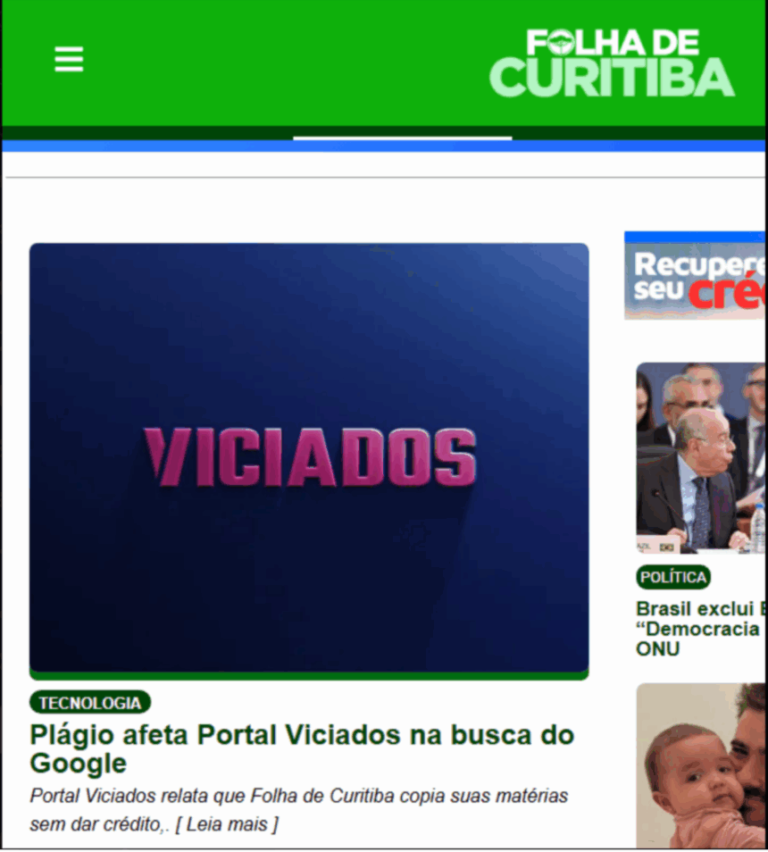 O portal Folha de Curitiba usava de automação para copiar conteúdos do portal Viciados. Nesse cenário, todos os conteúdos publicados de interesse do site curitibano era automaticamente postado, sem, ao menos, ter referência à fonte.