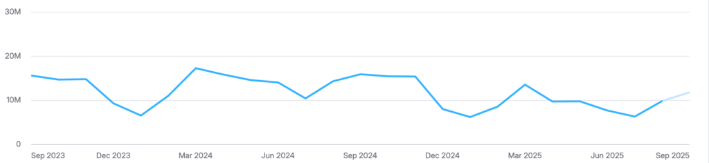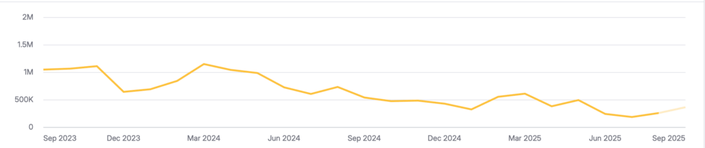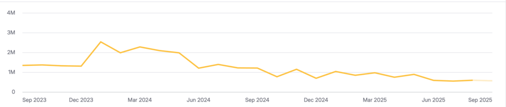 Em janeiro de 2024, 2 milhões e 500 mil páginas foram vistas no site. Em agosto, entretanto, apenas 602 mil. Isso significa 24,08% do topo recente. Ou seja, uma queda de cerca de 76%.