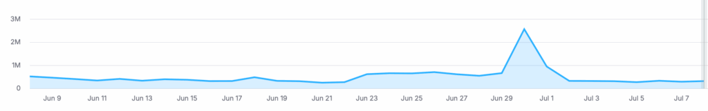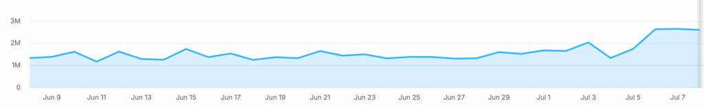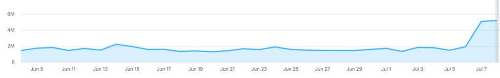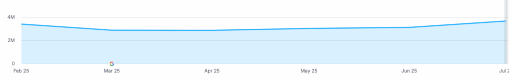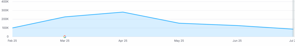 Embora o portal tenha chegado a ensinar grande crescimento no primeiro dia de Atualização, nesse momento, tem queda de 50% do que tinha no início de junho em SERP features.