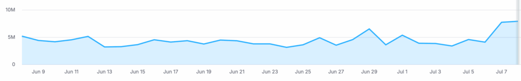 O Uai, por exemplo, depois de começar a produzir “conteúdos para Discover“, apresentou uma consistente alta no atual update. Aumento de 55% em SERP Features que, normalmente, traz boa parte do tráfego de portais de notícias. Veja: