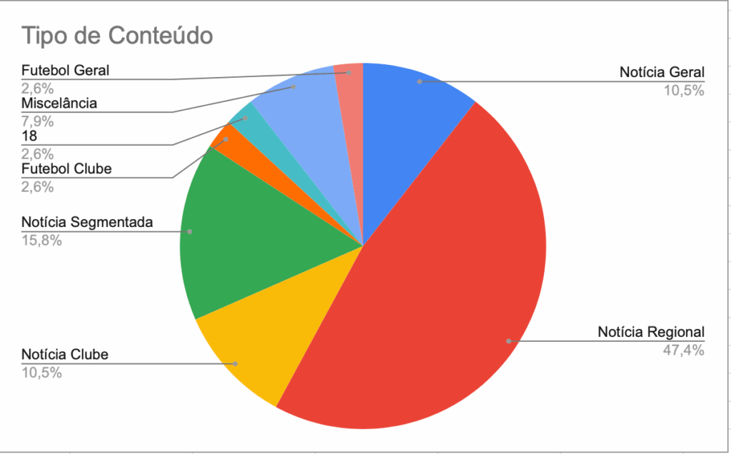 Por fim, segmentamos também por tipo de notícia, que pode ser: geral, regional, segmentada, futebol clube, clube de futebol, +18 e Miscelânea.