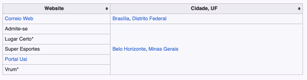 No Caso do Estado de Minas, o subdiretório utilizado é o E.M Foco. No Correio Brasiliense é o C.B Radar. Por fim, no Portal Uai é o Uai Notícias.