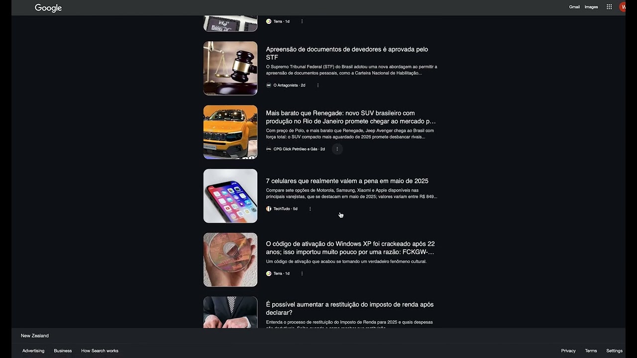 Primeiro ponto relevante foi que nenhum dos sites do meu feed eram os do dia a dia. Isso significa que a capacidade do Discover em enviar conteúdo de marcas já conhecidas não estava mais presente.