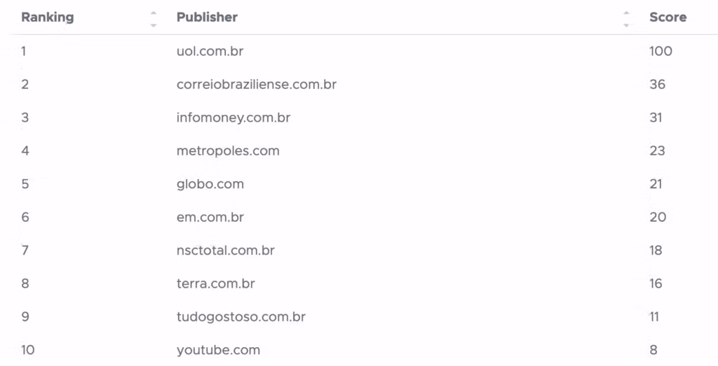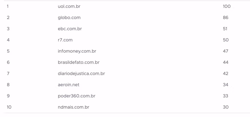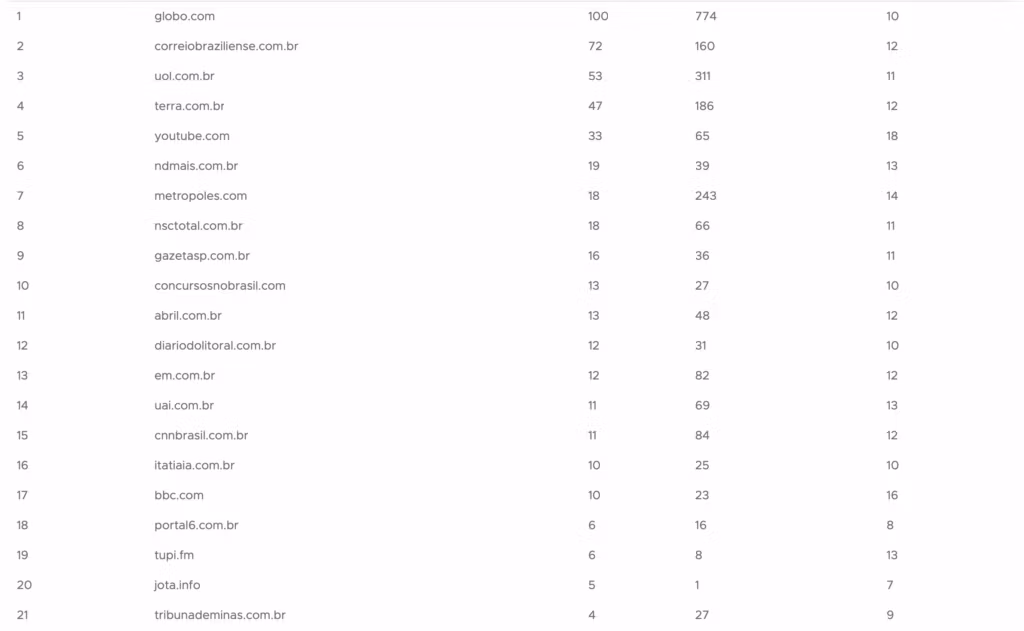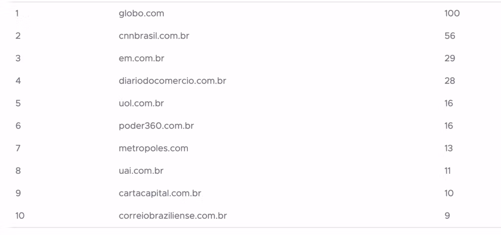 Dessa forma, quando mais portais aparecem mais vezes, mas com menos visibilidade, as ferramentas podem indicar queda da categoria, quando o que aconteceu foi uma pulverização de seus representantes.