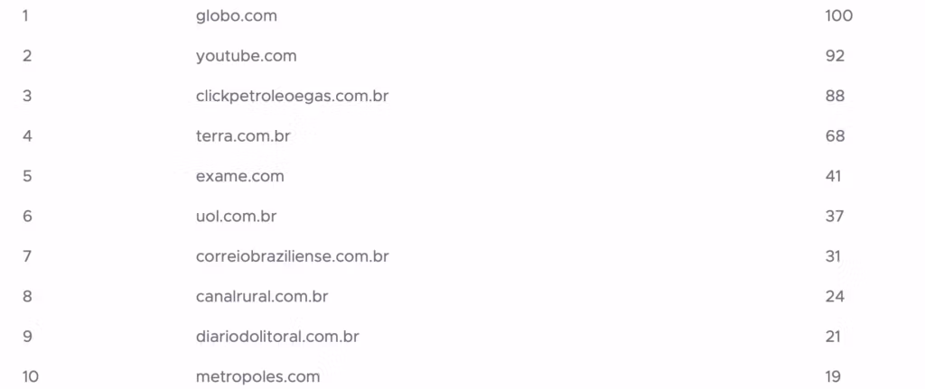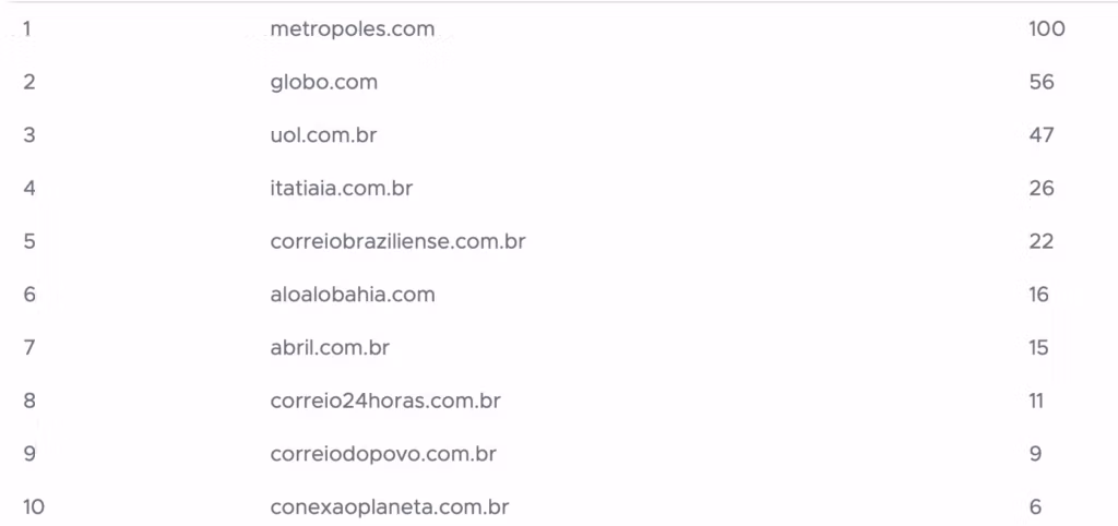 Observe que, aqui, na lista de 20 portais, você verá a maioria daqueles que produziram conteúdos de baixa qualidade: